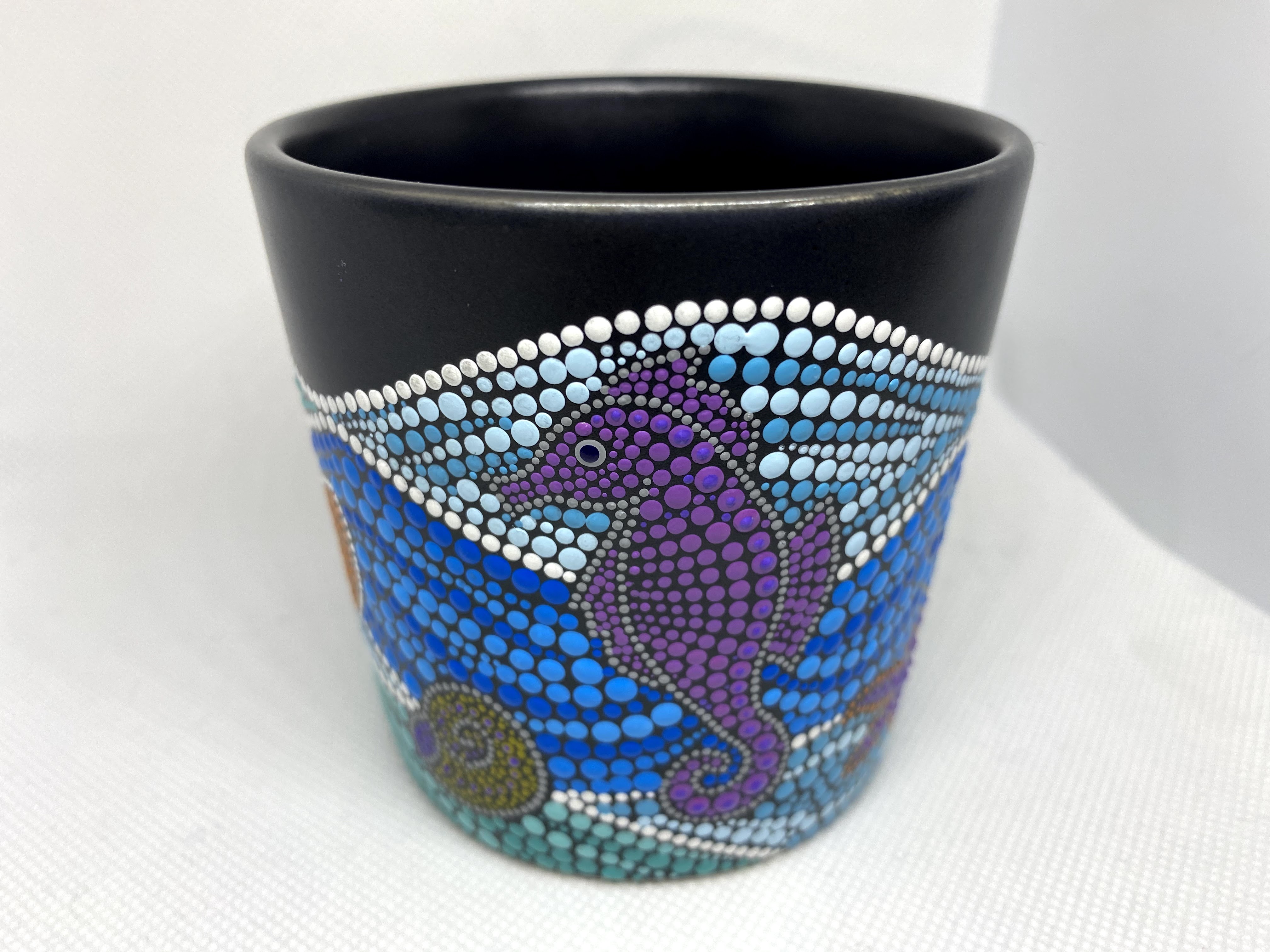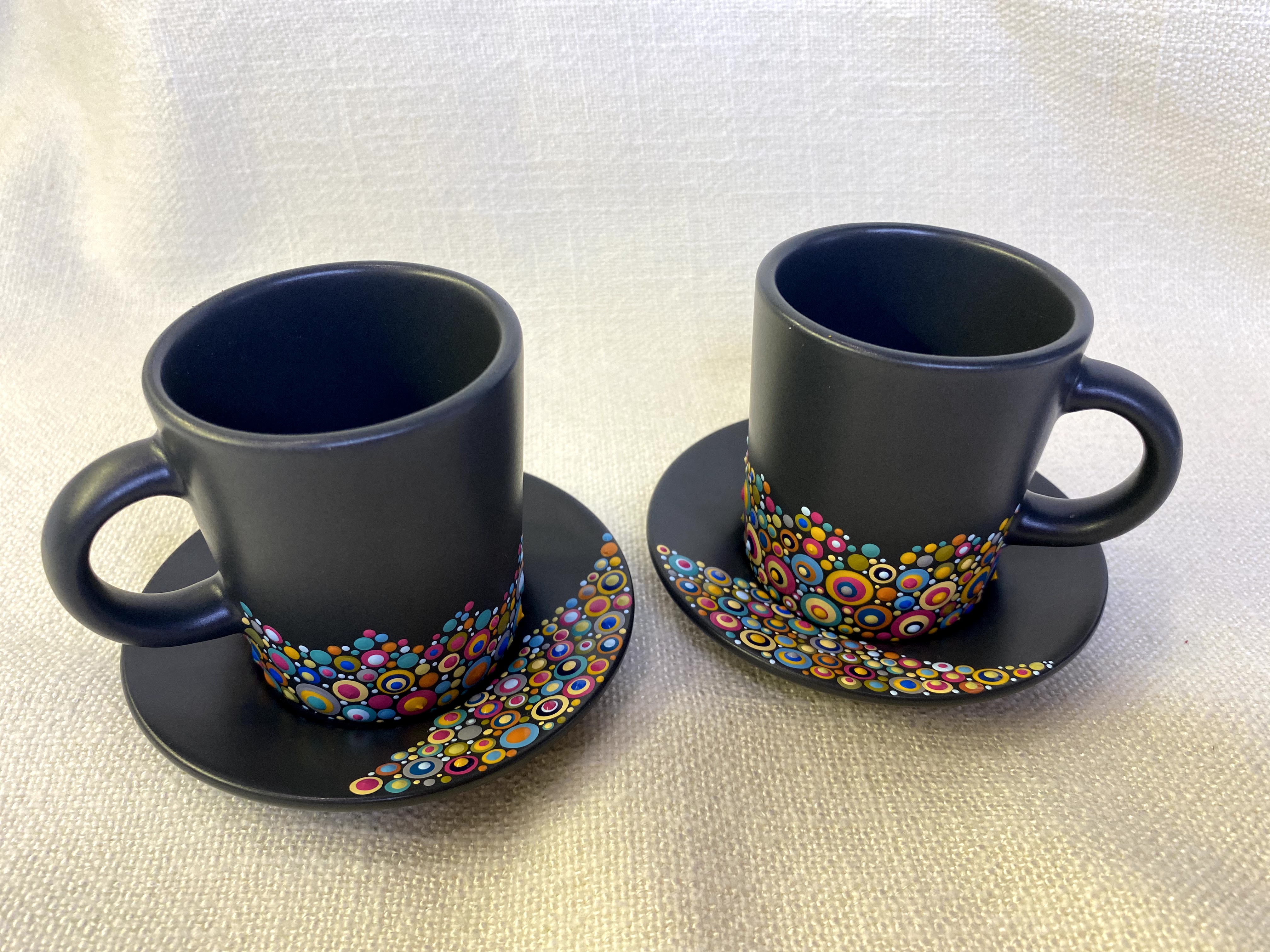 Za osnovu se bira keramika tamnih tonova, u crnoj i tamno sivoj boji, koja savršeno naglašava bogatstvo boja i detalja tačkanih dezena. Zahvaljujući nesvakidašnjem dizajnu, svaki komad posuđa postaje autentično umjetničko djelo, drugačije od onoga što se obično viđa na tržištu.