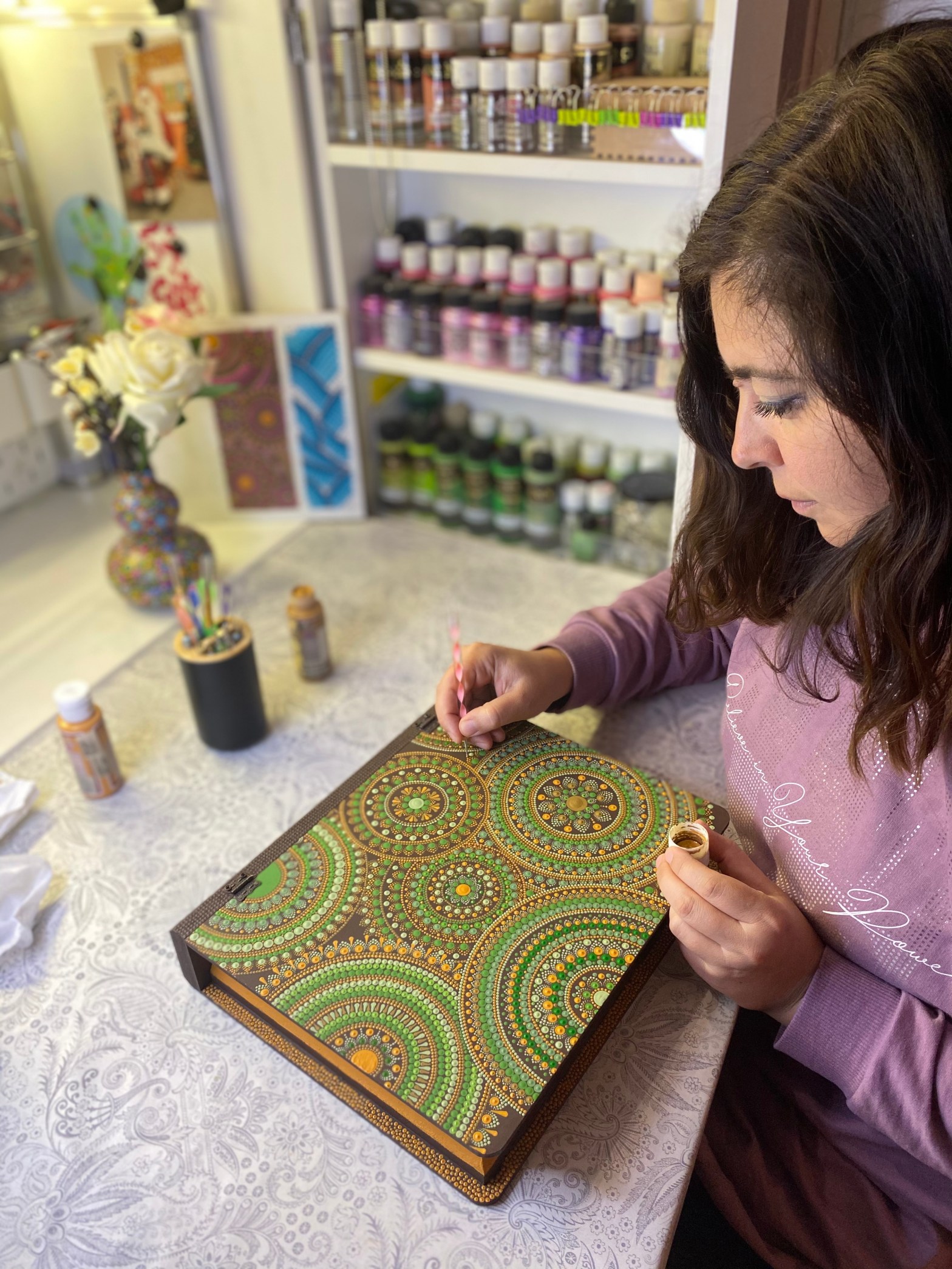 Nakit, dekorativni predmeti za kuću, magnetići izgledaju poput pravih malih remek-djela i svaki od njih je jedinstven. Bilo da odaberete nakit, mandale, magnete, ukrasne kutije ili nešto drugo – budite sigurni da ste vlasnica unikatnog umjetničkog djela.