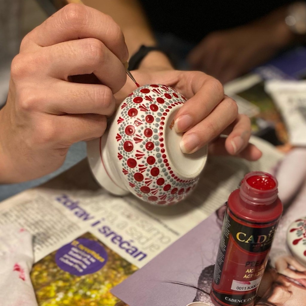 Tehnika tačkanja u DOT ART radionicama nije samo način kreiranja vizuelno privlačnih motiva – ona ima i meditativni učinak. Sam proces nanošenja tačkica, tačka po tačka, zahtijeva koncentraciju i miran ritam pokreta, što pomaže u fokusiranju uma, smanjenju stresa i postizanju osjećaja unutrašnje harmonije.