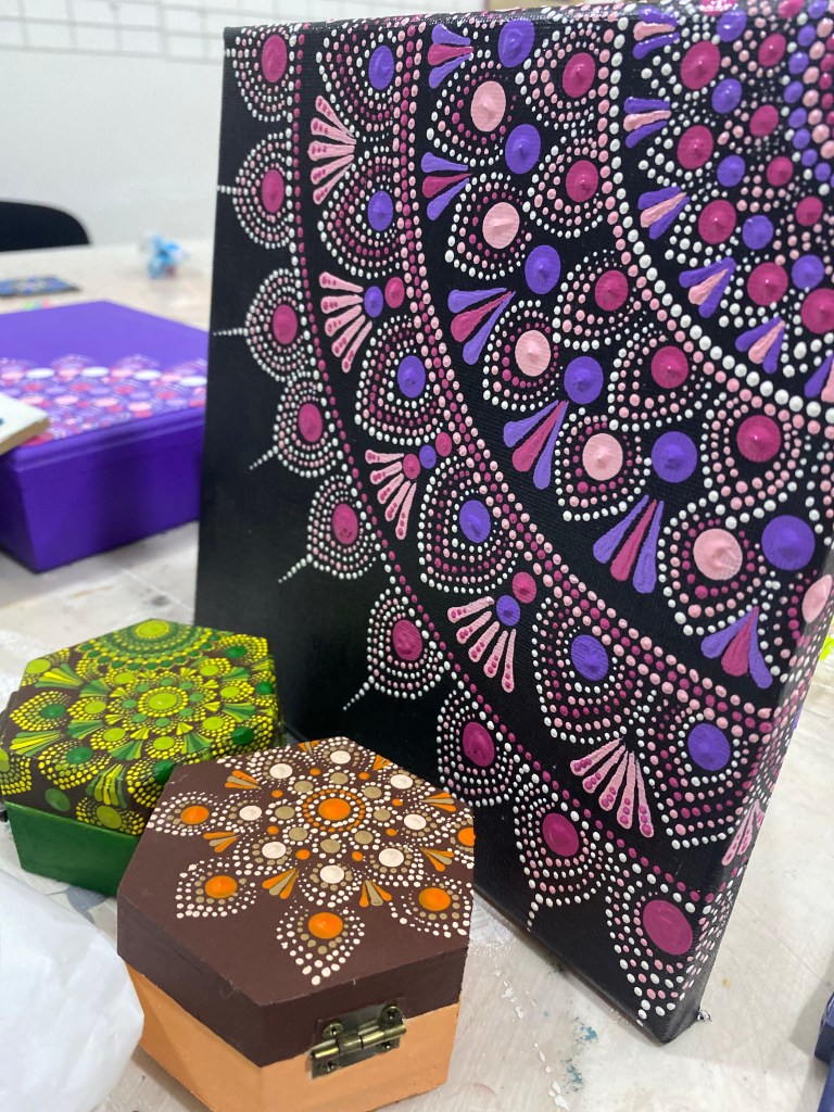 Kroz ovu tehniku, polaznici imaju priliku da usmjere pažnju na sadašnji trenutak, razvijaju strpljenje i osjećaj postignuća dok stvaraju svoj jedinstveni umjetnički rad. Tačkanje se često opisuje kao „meditacija u pokretu“, jer ritmičko nanošenje boja djeluje umirujuće i podstiče kreativnu introspekciju.
