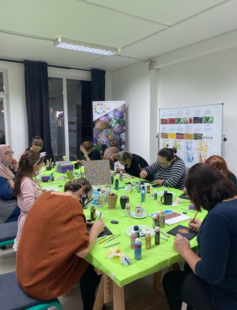 DOTS organizuje kreativne radionice za odrasle u manjim grupama, do maksimalno 8 polaznika. Ove radionice omogućavaju individualan pristup svakom učesniku, pružajući priliku za učenje tehnike tačkanja, razvijanje kreativnosti i stvaranje unikatnih umjetničkih djela. Radionice su prilagođene kako početnicima, tako i onima koji žele unaprijediti svoje vještine.