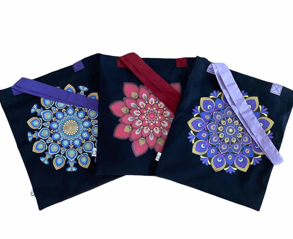 Na torbe i rance nanose se različiti motivi izrađeni tehnikom tačkanja – od mandala do inicijala imena ili drugih personaliziranih dizajna, stvarajući jedinstvene i prepoznatljive komade.