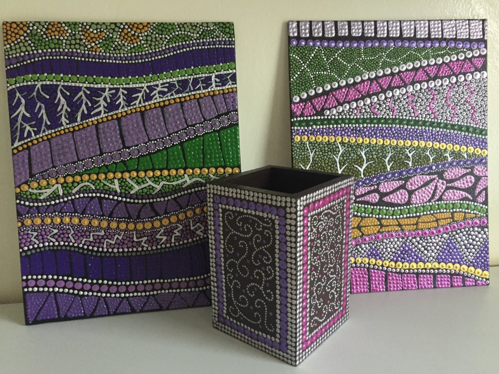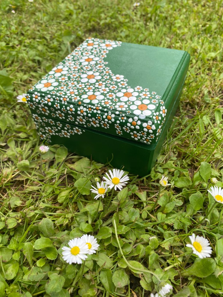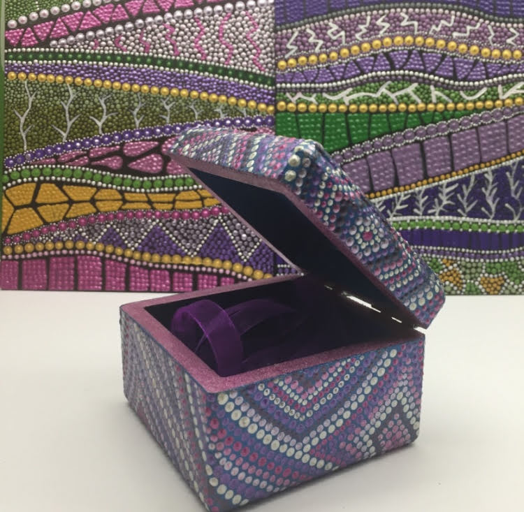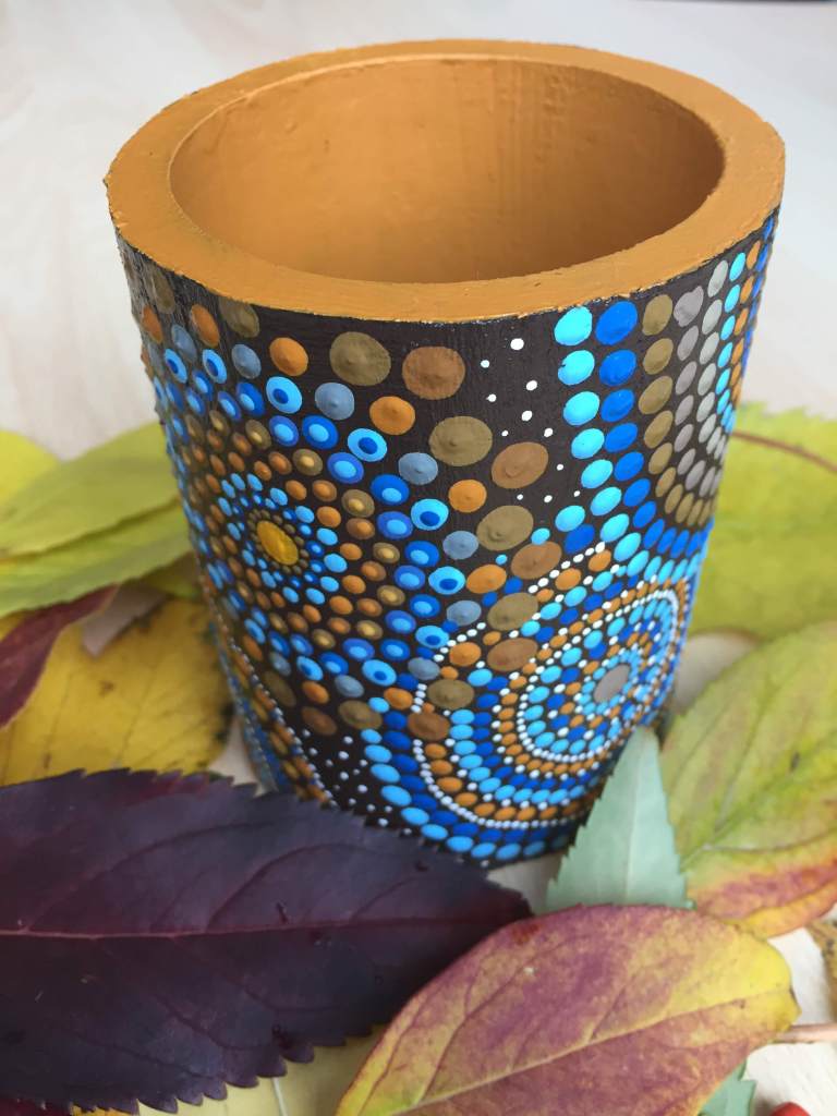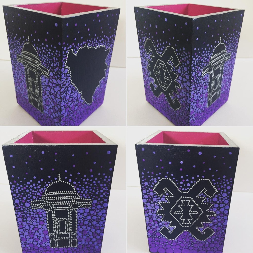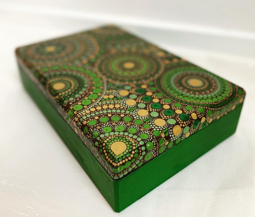 DOTS dekorativne kutije, okviri za slike, stalci za olovke i slični predmeti izdvajaju se po svom jedinstvenom dizajnu i pažnji posvećenoj svakom detalju. Svaki komad se ručno oslikava tehnikom tačkanja – i sa vanjske i sa unutrašnje strane – čime se svaki predmet pretvara u malo umjetničko djelo.