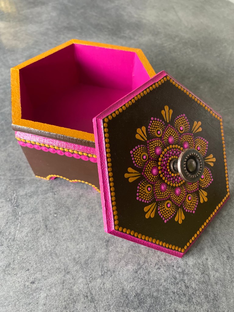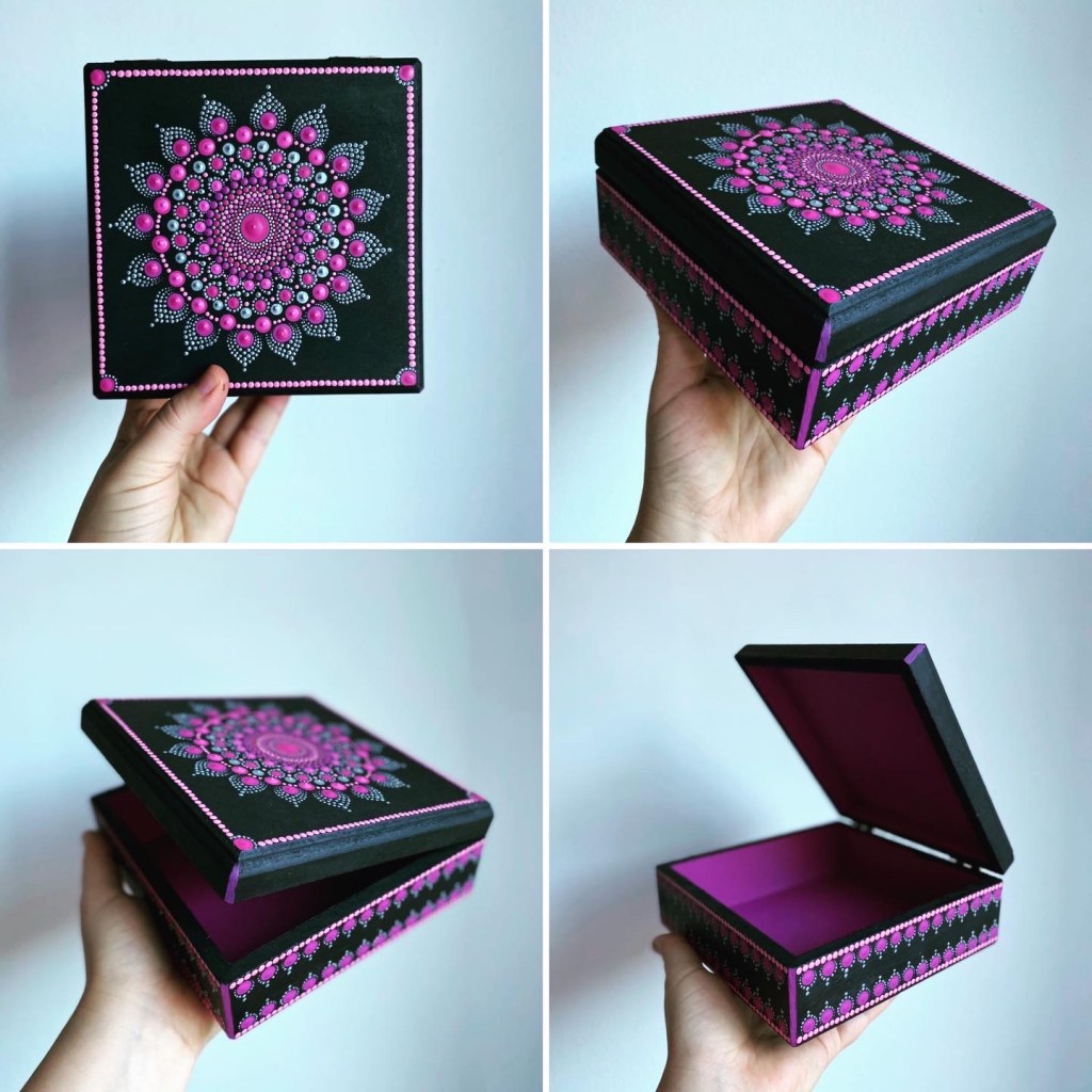 Kutije su višenamjenske i mogu se koristiti za odlaganje knjiga, nakita, ključeva, olovki ili drugih sitnica, pomažući da prostor bude organizovan, ali i vizuelno privlačan. Bogatstvo boja i pažljivo birani motivi daju ovim predmetima poseban karakter i energiju, čineći ih savršenim dodatkom kako za dom, tako i za radni prostor.