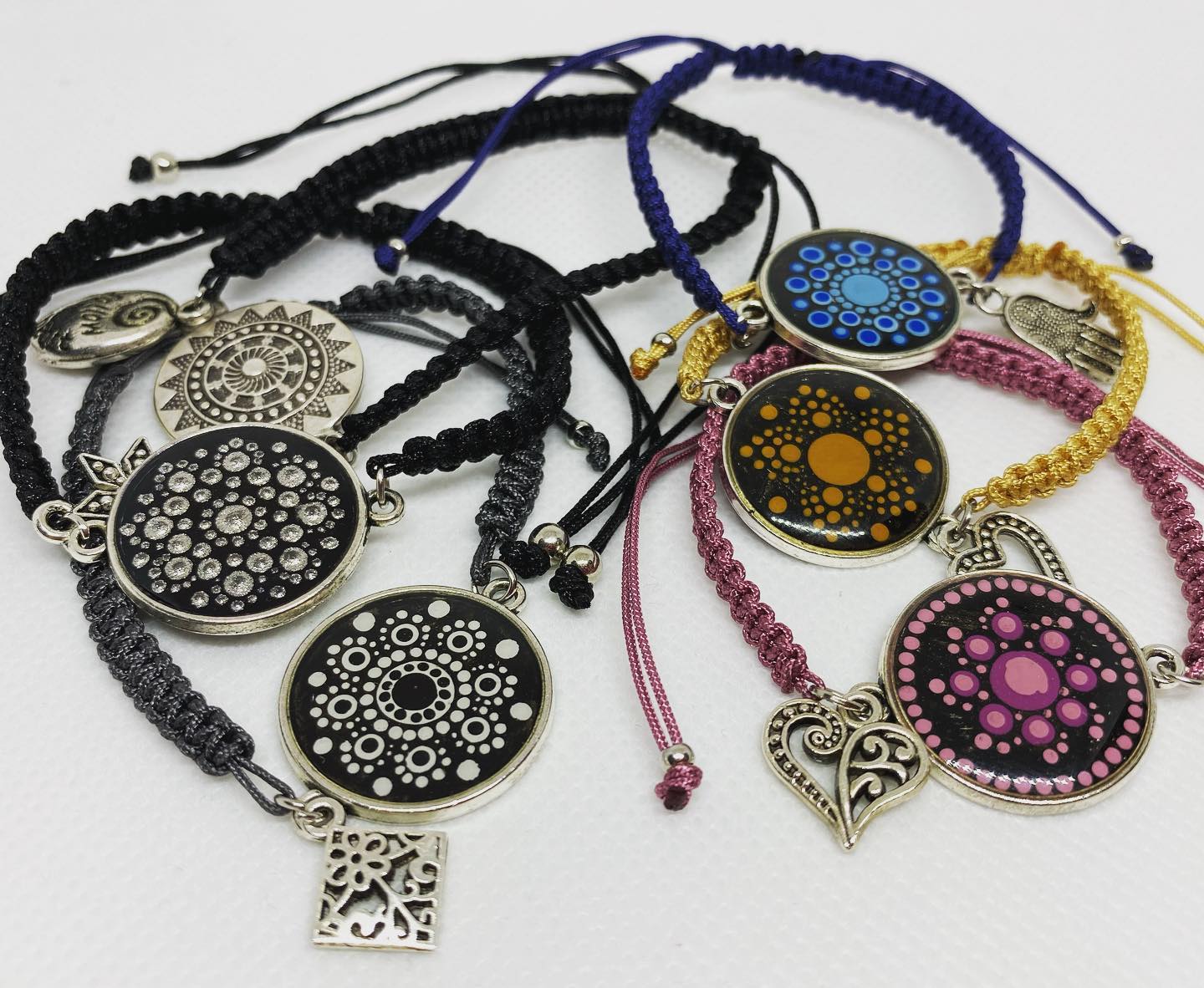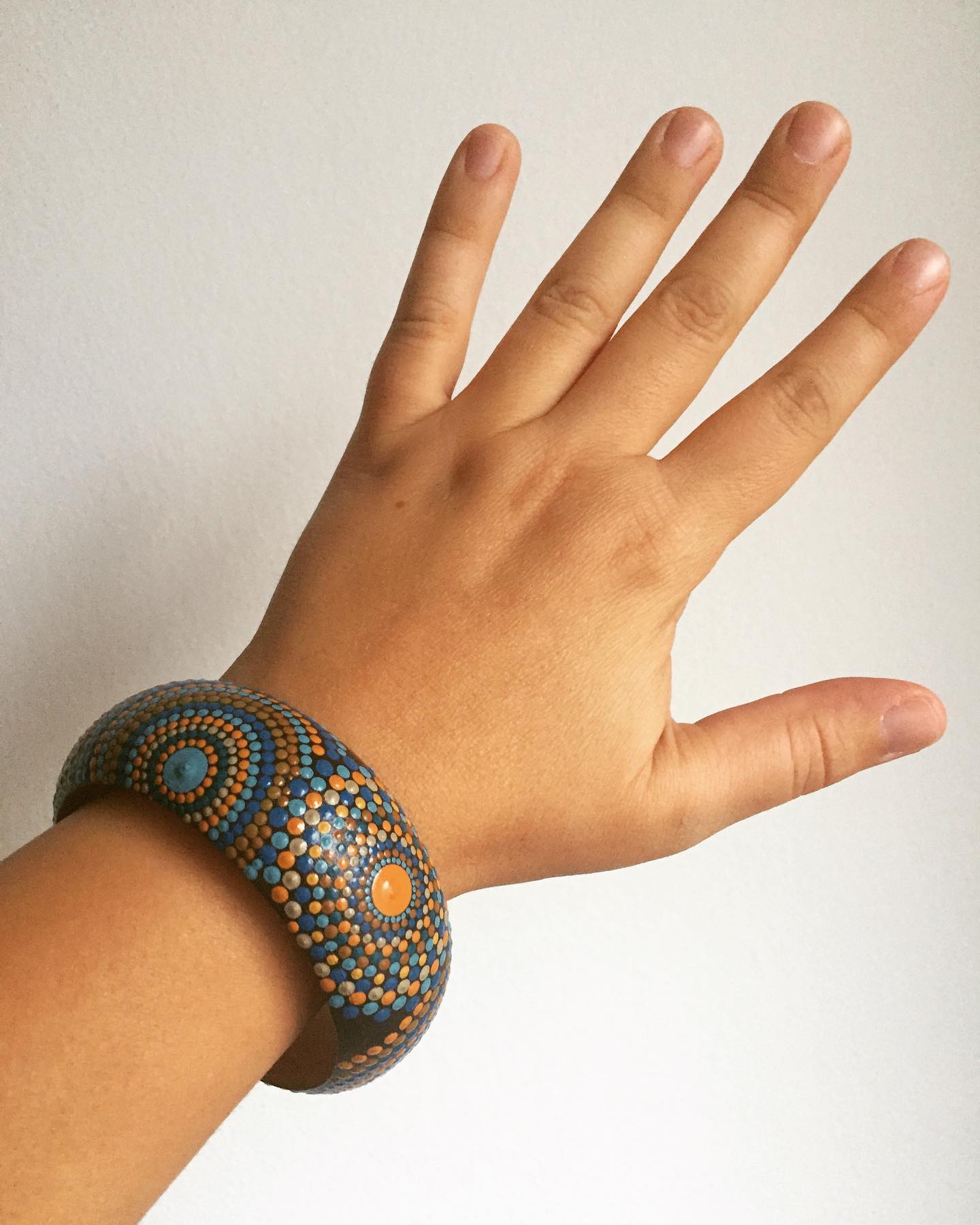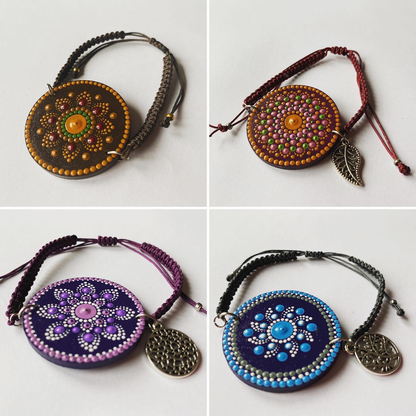 Za izradu narukvica najčešće se koriste drvene perle i halke. Prije oslikavanja definiše se forma narukvice i tek onda se pristupa oslikavanju koji je u svojoj prirodi najbliži procesu veza, bod po bod, tačka po tačka. Nakon toga drvene perle se nižu na elastičnu silikonsku traku ili satensku vrpcu, te se dodaju drugi dekorativni elementi po potrebi i želji.