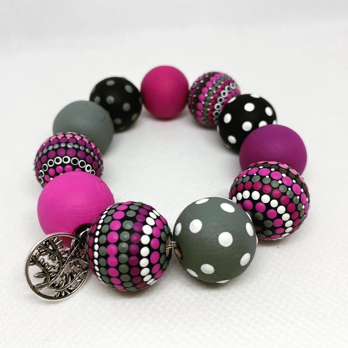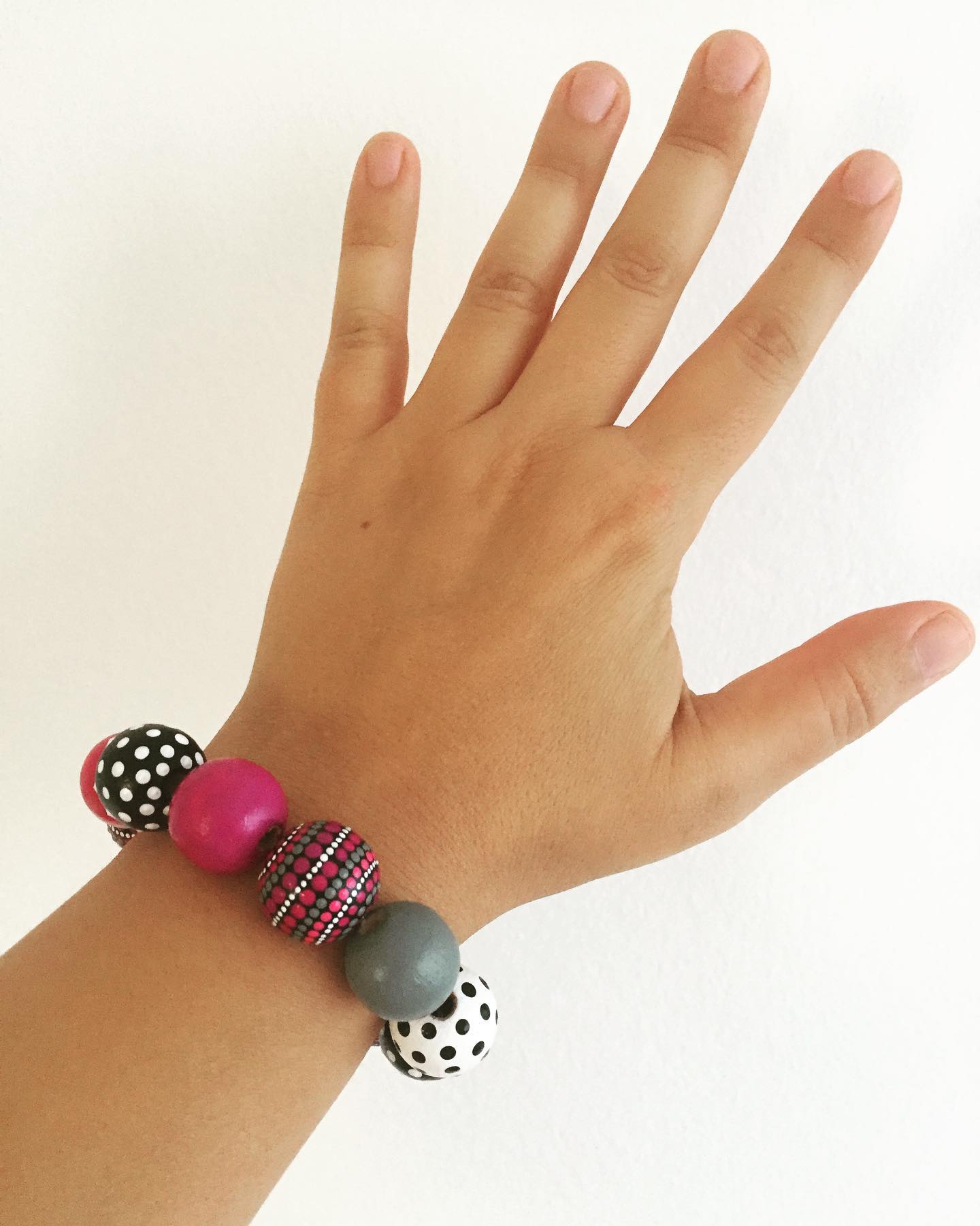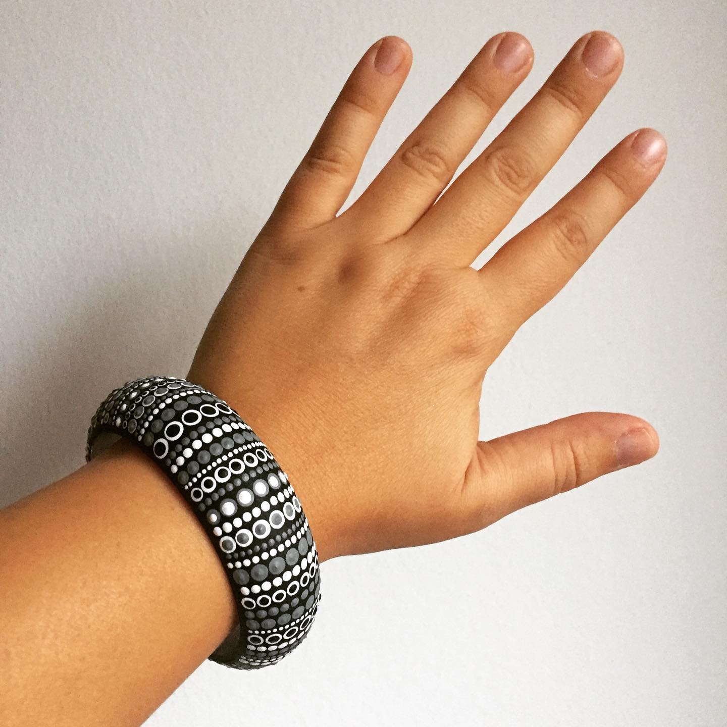 Za izradu narukvica najčešće se koriste drvene perle i halke. Prije oslikavanja definiše se forma narukvice i tek onda se pristupa oslikavanju koji je u svojoj prirodi najbliži procesu veza, bod po bod, tačka po tačka. Nakon toga drvene perle se nižu na elastičnu silikonsku traku ili satensku vrpcu, te se dodaju drugi dekorativni elementi po potrebi i želji.