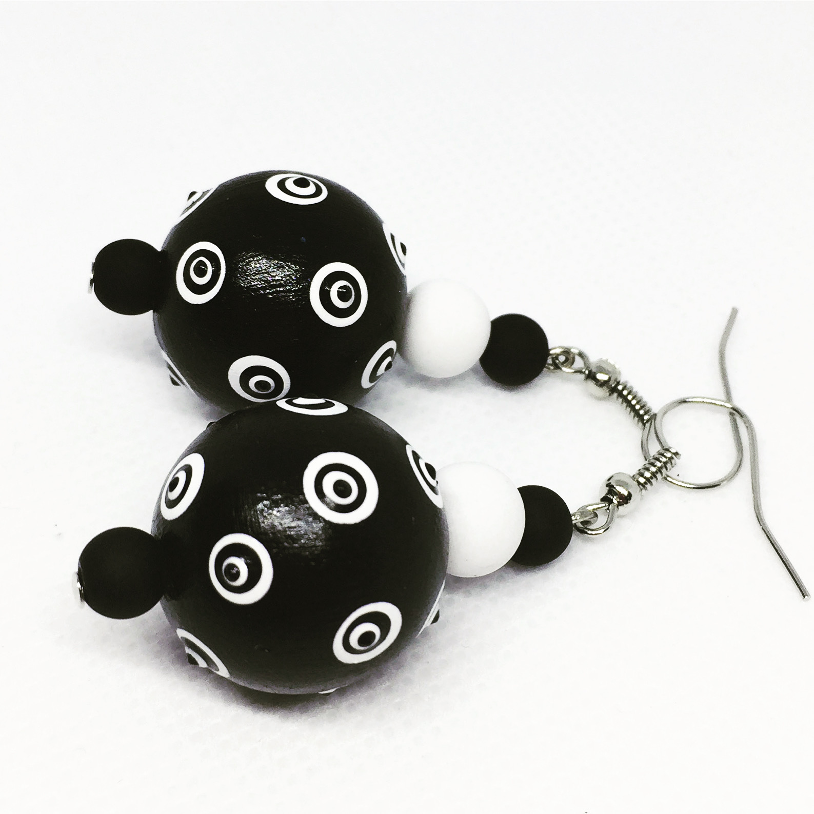 Za izradu naušnica najčešće se koriste drvene perle i drugi oblici različitih dimenzija. Prije oslikavanja definiše se forma naušnice i tek onda se pristupa oslikavanju koji je u svojoj prirodi najbliži procesu veza, bod po bod, tačka po tačka. Nakon toga, drveni elementi se spajaju sa ostalim ukrasnim i metalnim dijelovima (perlicama, kukicama, isl.).