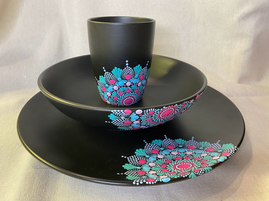 Za oslikavanje se koriste netoksične boje za staklo i porculan, sigurne za svakodnevnu upotrebu. Nakon oslikavanja, posuđe se peče 20 minuta na 180 °C, čime se postiže dugotrajnost i postojanost boja.