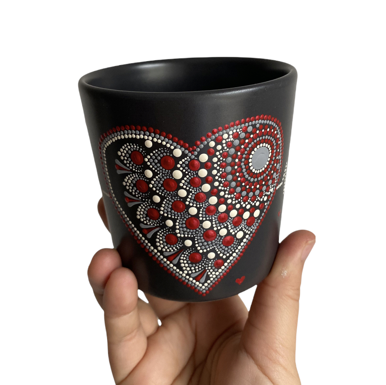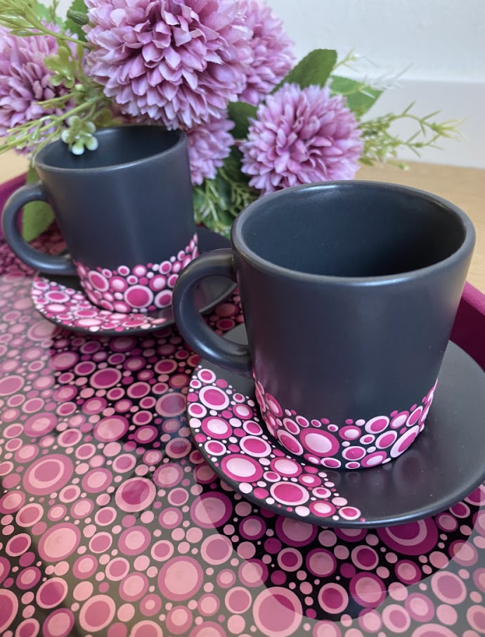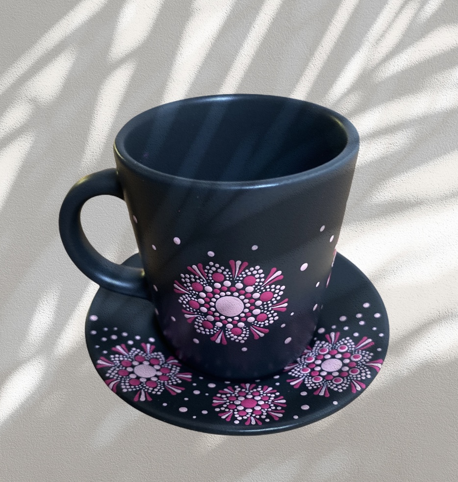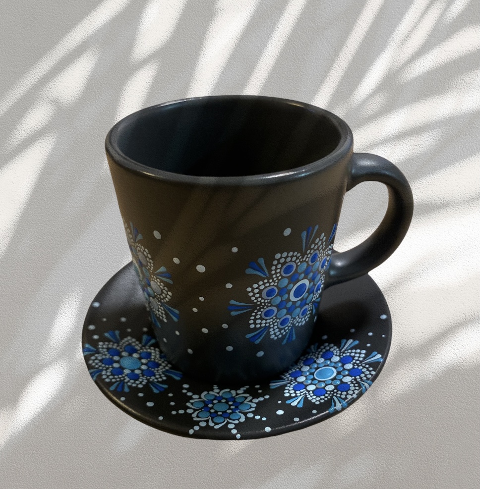 DOTS uglavnom bira keramiku tamnih tonova – crnu i tamno sivu – koja savršeno ističe bogatstvo boja i jedinstvene dezene tačkanja. Takvim odabirom, DOTS keramičko posuđe se izdvaja od uobičajene ponude ručno oslikanog posuđa, nudeći autentičan i originalan dizajn.