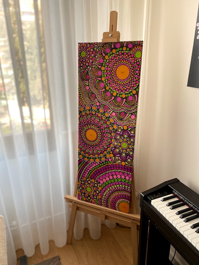 DOTS printovi prenose unikatne motive nastale tehnikom tačkanja na visokokvalitetno slikarsko platno, stvarajući dekorativne komade umjetnosti koji se lako uklapaju u svaki prostor. Svaki print zadržava detalje, boje i energiju originalnih radova, omogućavajući da ljepota DOTS motiva krasi vaš dom ili radni prostor bez potrebe za dugotrajnim oslikavanjem „tačka po tačka“.