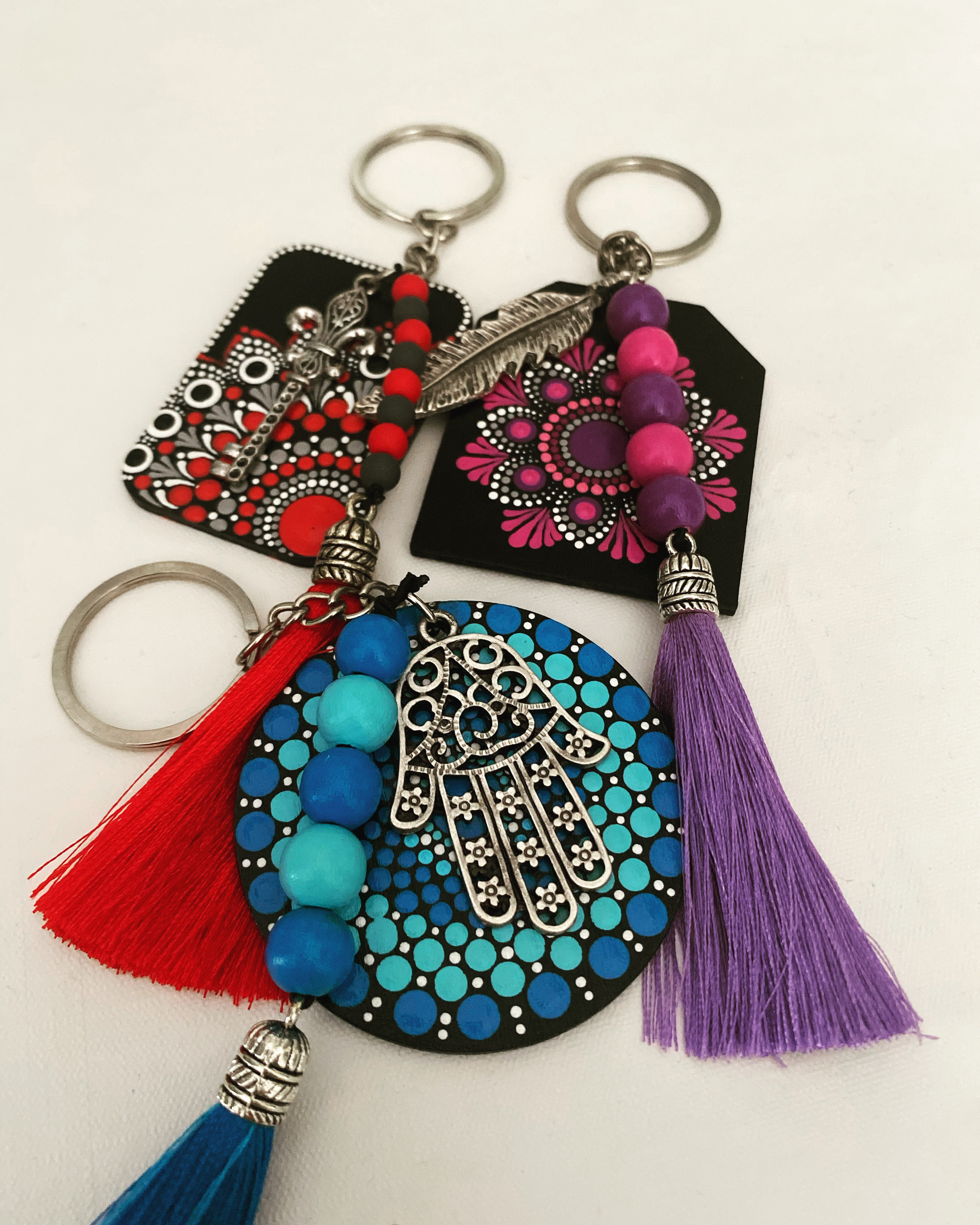 Svaki privjesak nosi svoj originalni dizajn – od šarenih mandala do minimalističkih dezena – i izrađen je s pažnjom kako bi bio dugotrajan i vizuelno upečatljiv.