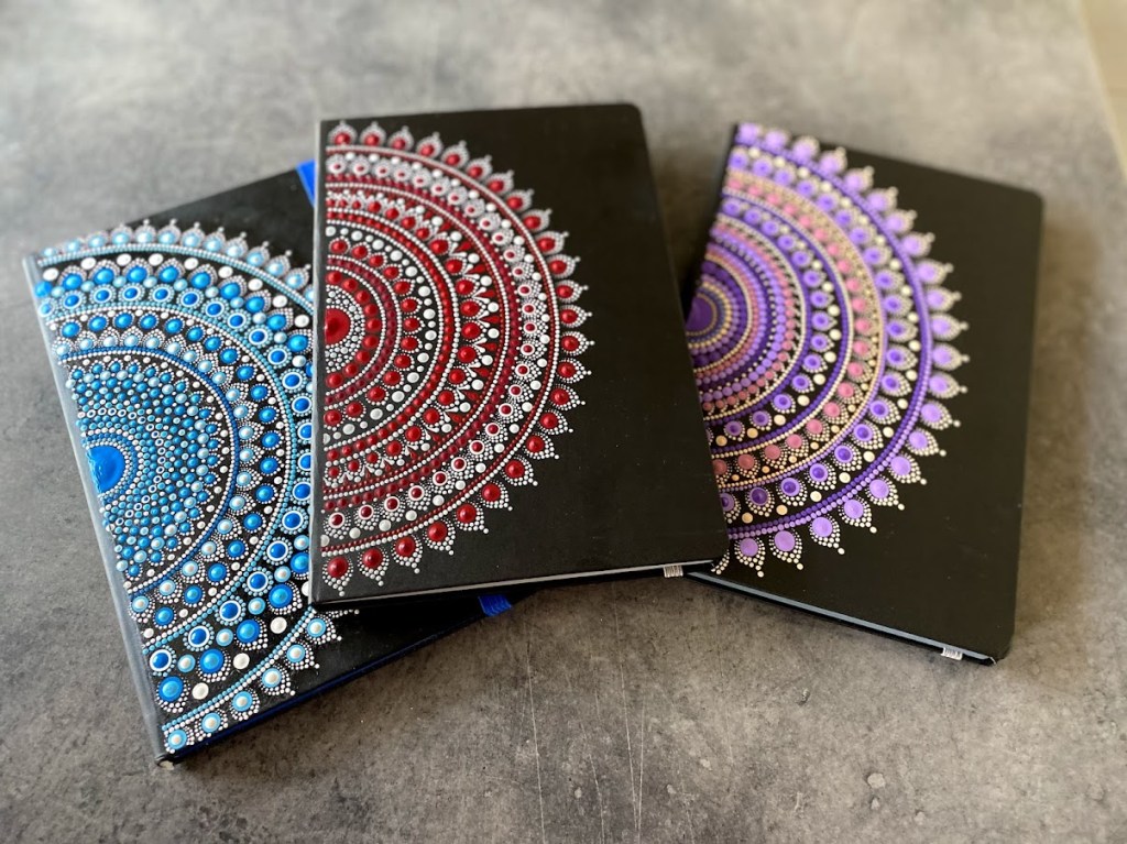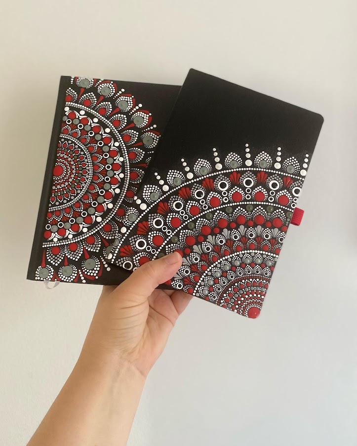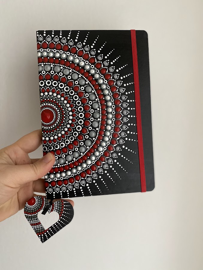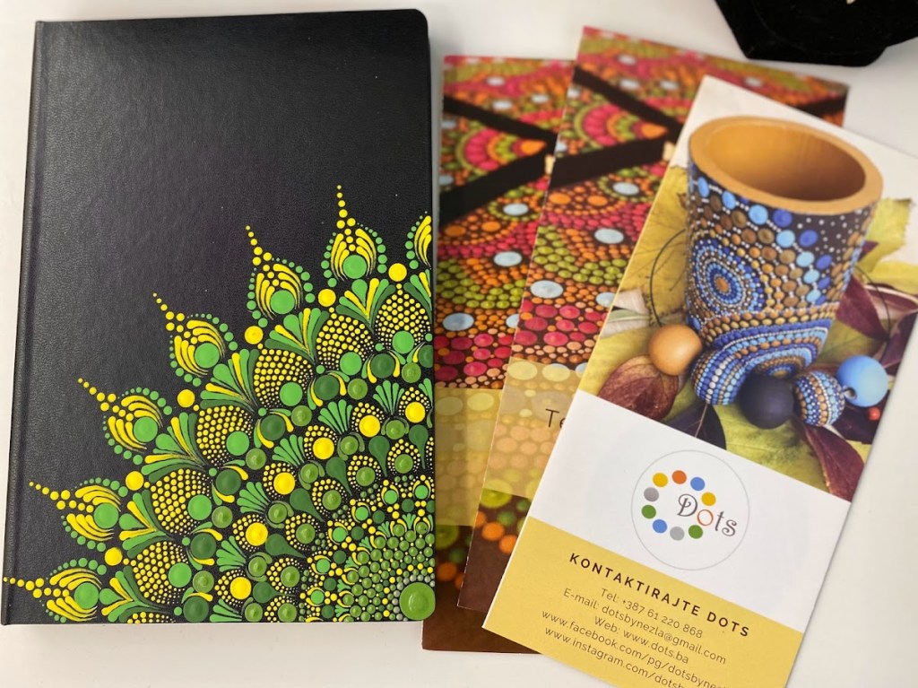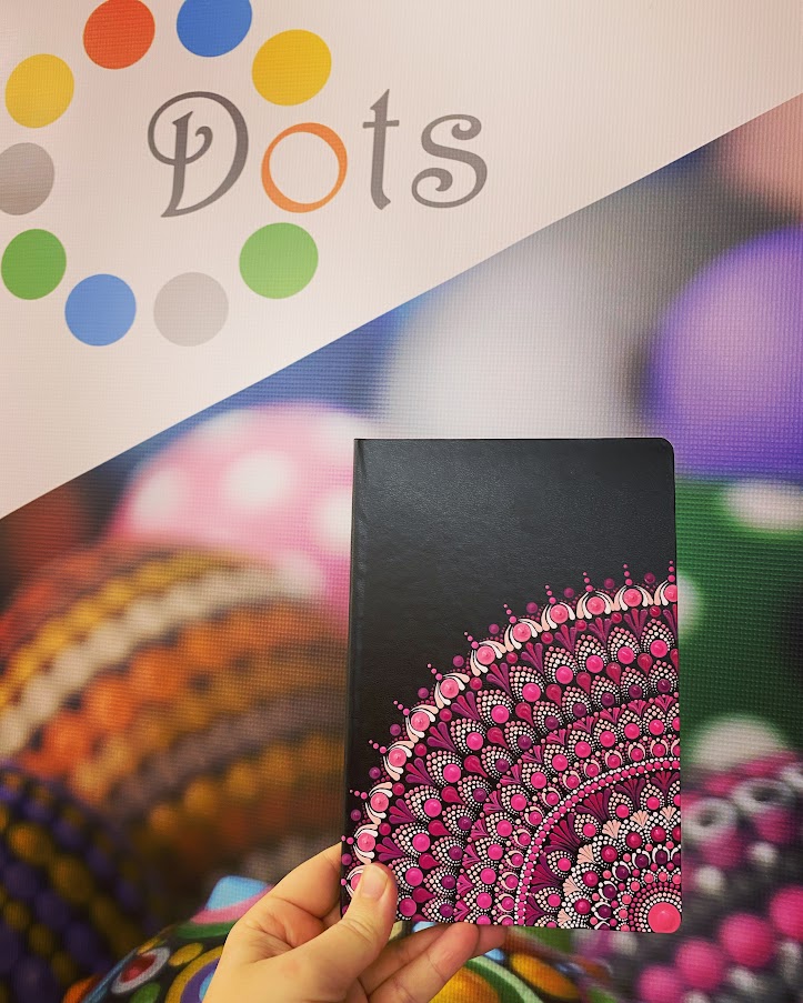 DOTS nudi ručno oslikane rokovnike koji spajaju funkcionalnost i umjetnički izražaj. Svaki rokovnik je jedinstven – omoti se oslikavaju tehnikom tačkanja, što rezultira bogatim i živopisnim motivima koji čine svaki komad originalnim.